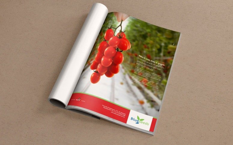Criamos o anúncio do nosso cliente Blueseeds na Revista Plasticultura deste mês.